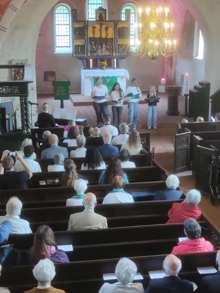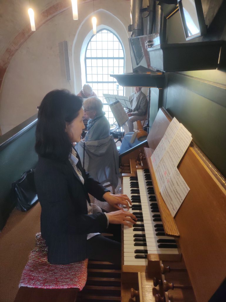 An der Orgel überzeugte Hyunjoo Na mit Werken von Dietrich Buxtehude und Georg Böhm. Ein Höhepunkt war dann der Auftritt von Ela Jackisch mit dem Stück Herzensruhe von Ulf Werner. Der Nachmittag schloss mit dem gemeinsamen Auftritt der CCG und des Kirchenchores mit dem Segenslied „Möge die Straße“. In der Pause war Gelegenheit bei Kaffee und Kuchen sich über das gehörte Auszutauschen.